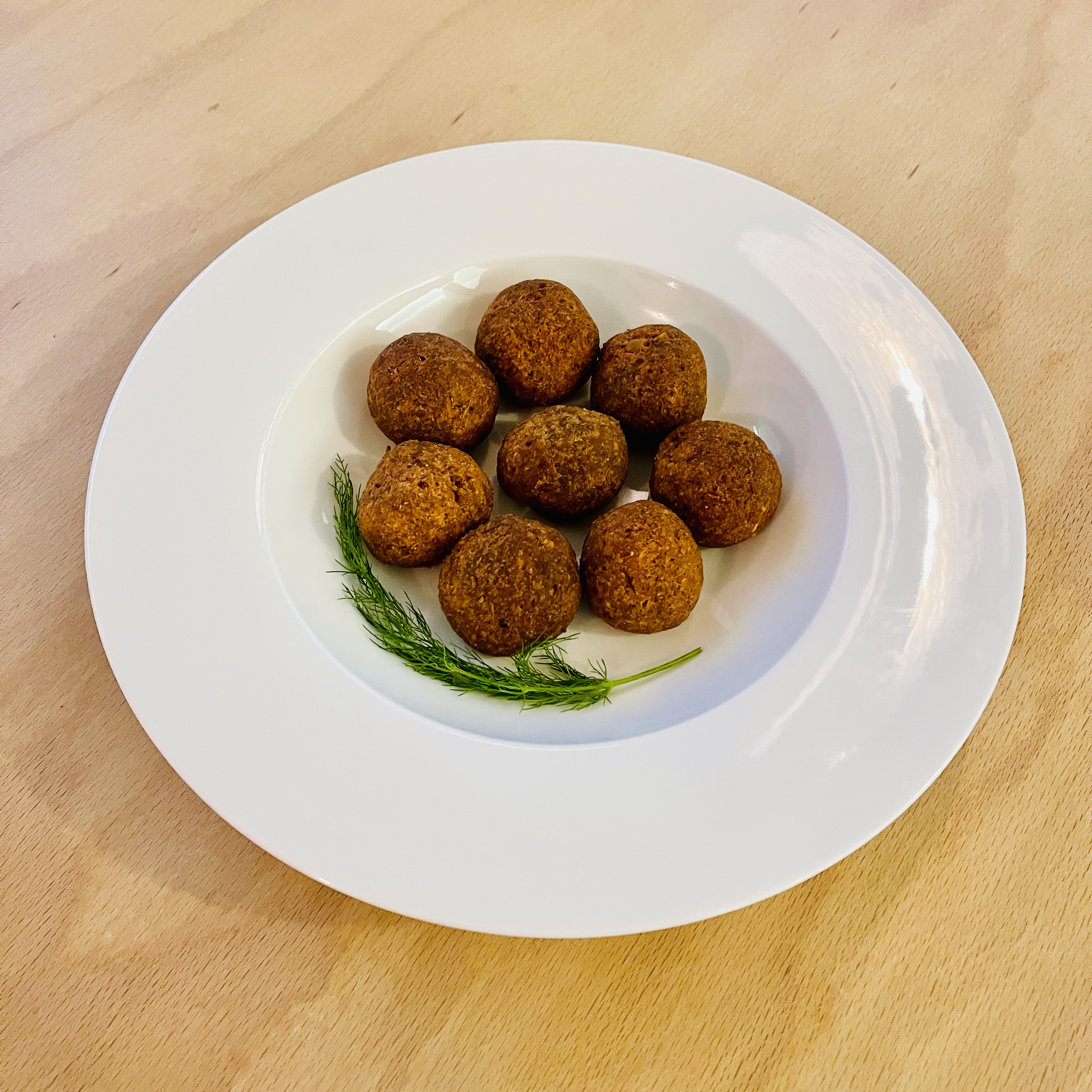 부엌에서는 자연 재료로만 고기를 만들어요.