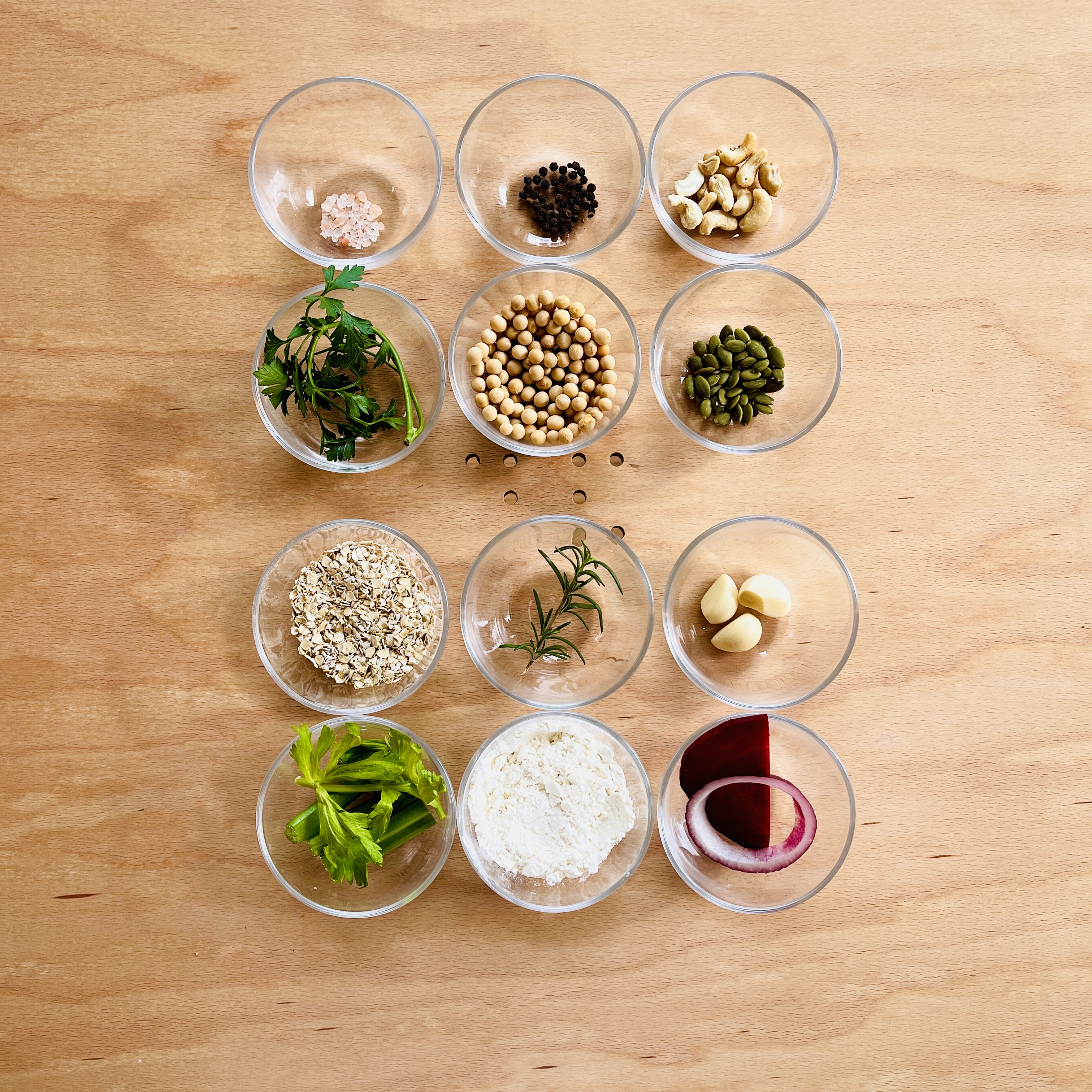 반죽 재료 : 하얀 콩과 캐슈넛트, 해바라기씨, 오트밀