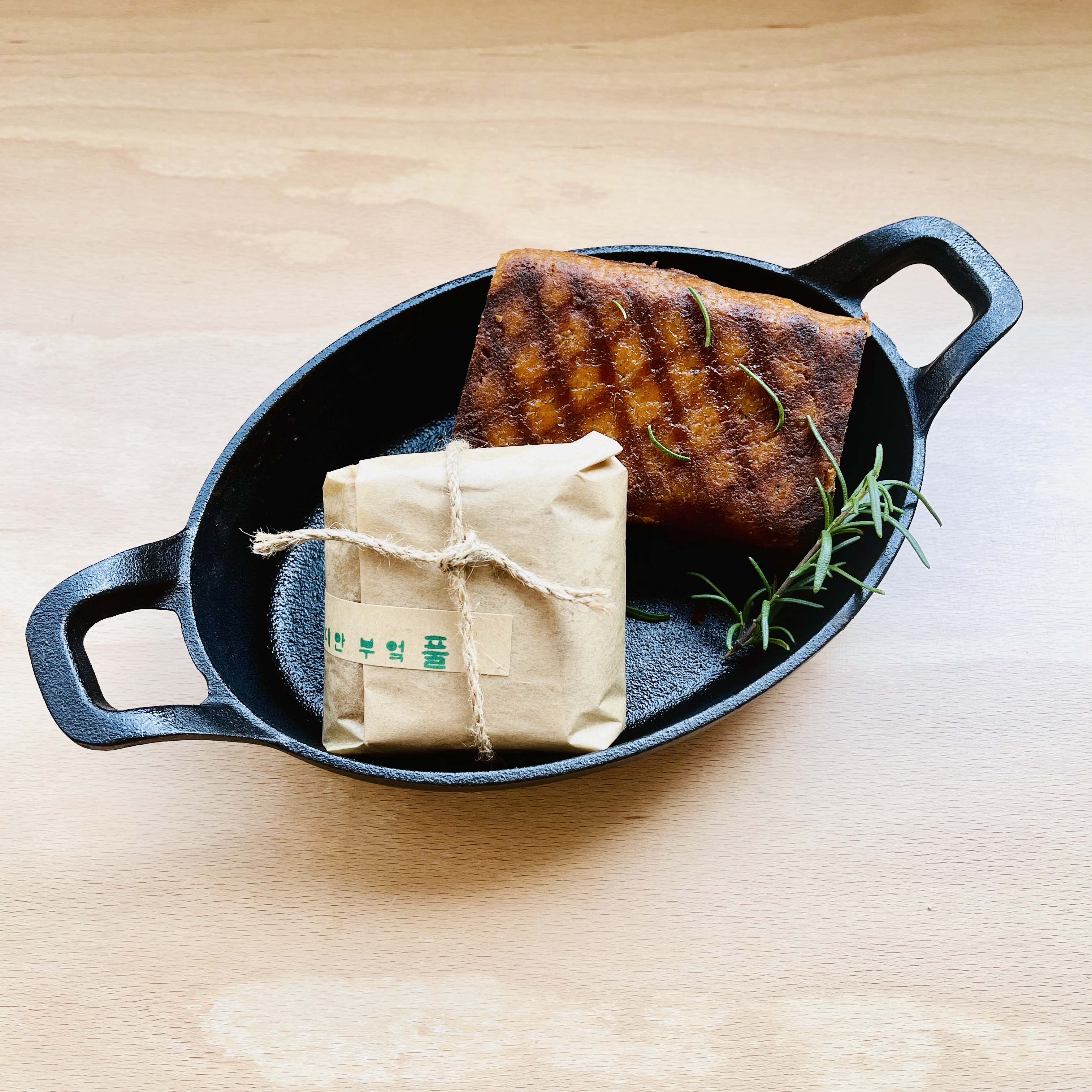 넙적하게 스팸처럼 만들어 뚝딱 썰어내면